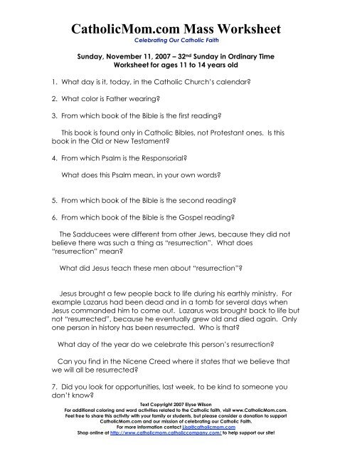 Catholicmom com mass worksheet