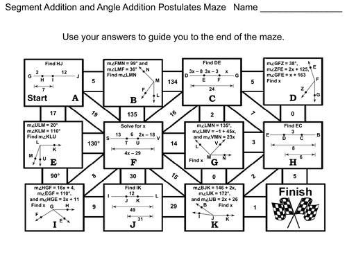 ways to prove triangles are congruent worksheets Geometry Segment and Angle Addition Postulates Riddle Worksheet This riddle worksheet covers the segment addition postulate and the angle addition postulate. The students are asked to set up and solve linear equations to find the value of x and to then substitute it back in to find a part of a segment, an entire segment a part of an angle or an ...