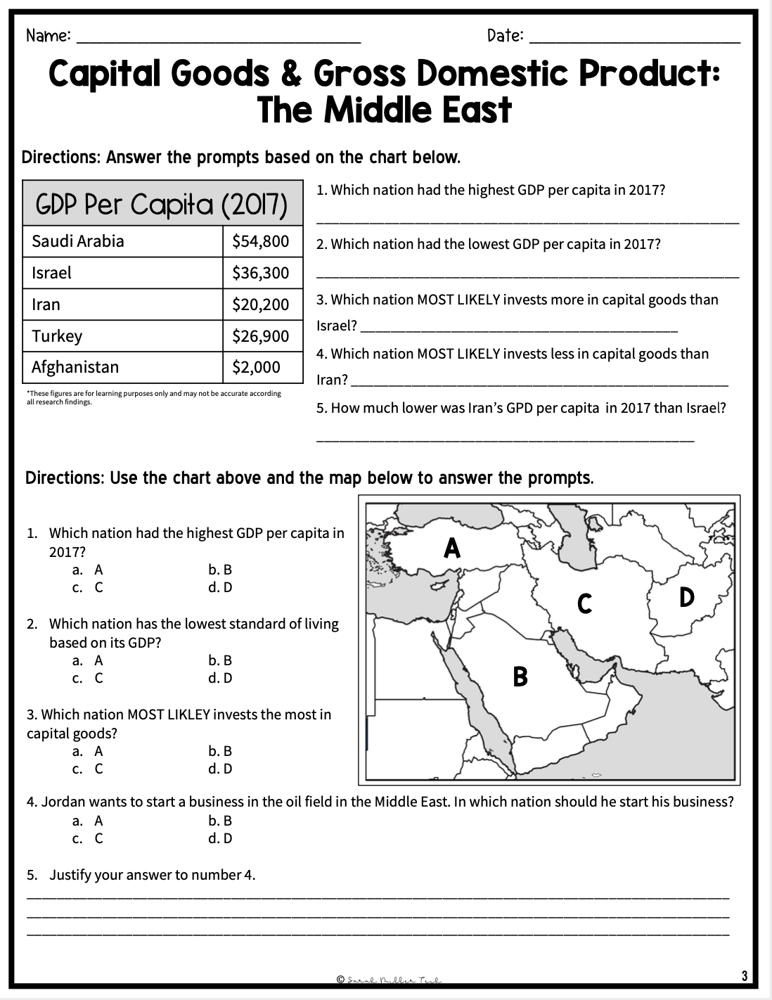 Reading a map worksheet