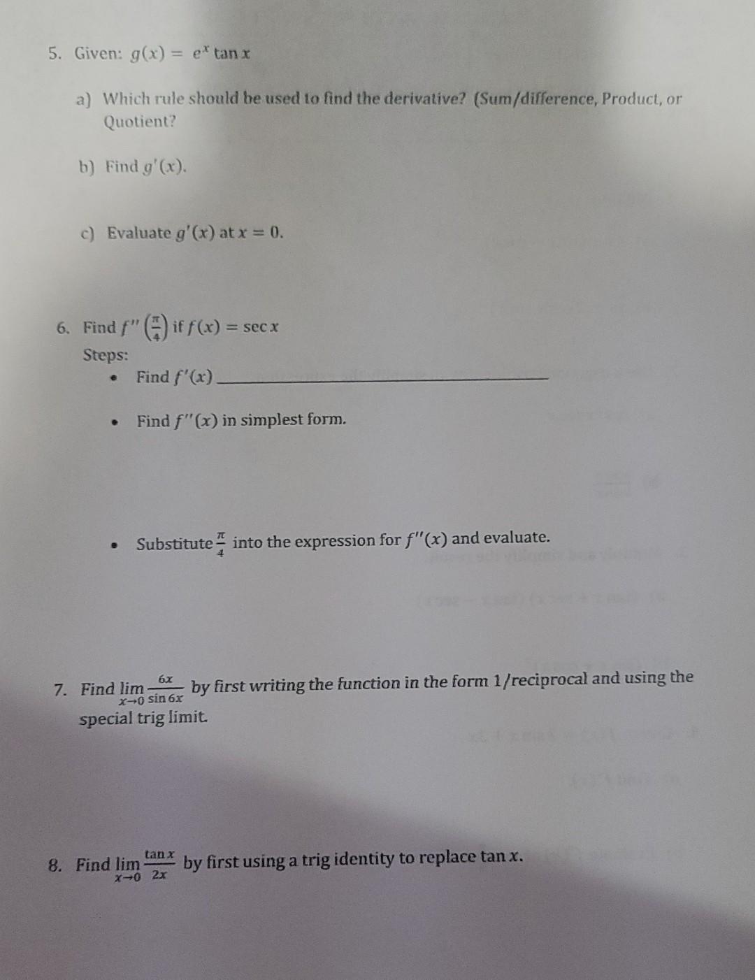 42 derivatives of trigonometric functions worksheet