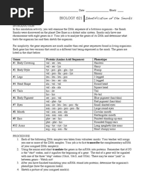 Dna Rna And Snorks Worksheet Answers - test.cinema5d.com that sequence How DNA Controls the Workings of a Cell - examine a DNA sequence, transcribe and translate DNA Sequencing in Bacteria - website simulates the sequencing of bacterial DNA Directions: Worksheets: DNA-RNA-Crime-Snorks-2018 & Amino Acid Codon Wheel, & additional resource: 20 Amino Acids. Step 1 - students will transcribe the DNA