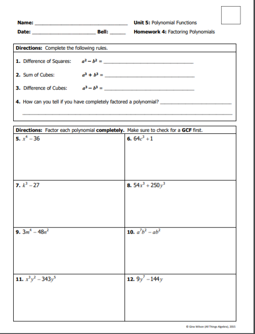 Factor each polynomial worksheet answers