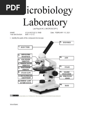 Answer Key Lab Microscopes and Cells - StuDocu Part 1: Microscope Parts. The compound microscope is a precision instrument. Treat it with respect. When carrying it, always use two hands, one on the base and one on the neck. The microscope consists of a stand (base + neck), on which is mounted the stage (for holding microscope slides) and lenses.