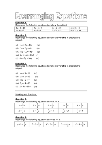 Rearranging Formulae: Worksheets with Answers - Mr Barton Maths Mathster is a fantastic resource for creating online and paper-based assessments and homeworks. They have kindly allowed me to create 3 editable versions of each worksheet, complete with answers. Worksheet Name. 1. 2. 3. Changing the Subject - Basics. 1. 2.