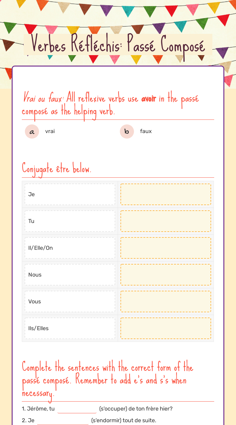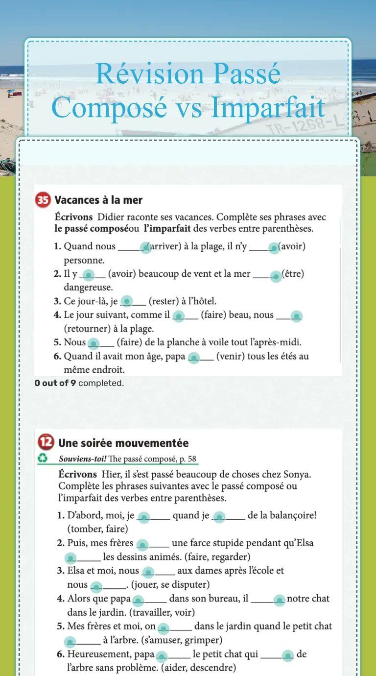 Imparfait vs passe compose worksheet. Passe Compose Vs. Imparfait Worksheets & Teaching Resources | TpT Browse passe compose vs. imparfait resources on Teachers Pay Teachers, a marketplace trusted by millions of teachers for original educational resources. DID YOU KNOW: Seamlessly assign resources as digital activities. Learn how in 5 minutes with a tutorial resource. 8a-1 The Passe Compose vs the Imparfait part 1.ppt - Point... View 8a-1 The Passe Compose vs the Imparfait part 1.ppt from FR 10 at New Canaan High School. Point de départ Although the passé composé and the imparfait are both past tenses, they have very ... NP_EX_7-_Syrmosta lecture and solutions worksheets.xlsx. Seneca College. SMS 515. 368 pages. Re view acquisition histories 3 Determine scope and ex ... The Passe Compose Vs The Imparfait Worksheets - K12 Workbook Displaying all worksheets related to - The Passe Compose Vs The Imparfait. Worksheets are Limparfait et le pass compos the imparfait and the, Pass compos imparfait the pass compos is used to, Week french i peery, Nom date avait, Imperfect tense regular verbs 1, Pass compos with avoir irregular past participles, , Intermediate french ii. imparfait passé composé worksheets imparfait passé composé interactive and downloadable worksheets. Advanced search. x. Advanced search. Content: ... Passe compose ou imparfait by stacya: Plus-que-parfait, passé composé, imparfait by Khrystyna_Hurman: Les temps du passé ...