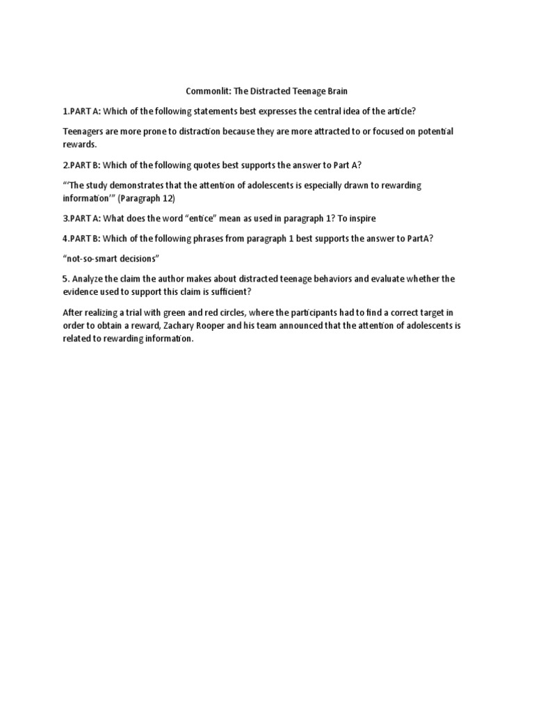 Inside the teenage brain worksheet answers
