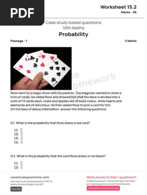 Probability with a deck of cards worksheet answers. › fintech › cfpb-funding-fintechU.S. appeals court says CFPB funding is unconstitutional ... Oct 20, 2022 · That means the impact could spread far beyond the agency’s payday lending rule. "The holding will call into question many other regulations that protect consumers with respect to credit cards, bank accounts, mortgage loans, debt collection, credit reports, and identity theft," tweeted Chris Peterson, a former enforcement attorney at the CFPB who is now a law professor at the University of Utah. › playstation-userbasePlayStation userbase "significantly larger" than Xbox even if ... Oct 12, 2022 · Microsoft has responded to a list of concerns regarding its ongoing $68bn attempt to buy Activision Blizzard, as raised by the UK's Competition and Markets Authority (CMA), and come up with an ... jqlw.conit-group.pl › probability-of-compoundprobability of compound events worksheet with answers pdf Basic Probability Worksheet With Answer Key Printable Pdf Source: data.formsbank.com. Showing top 8 worksheets in the category pie charts grade 5. Basic probability worksheet with answers pdf. Probability Worksheets With Answers Pdf In 2020 Source: i.pinimg.com. Aug 04, 2021 · pie chart worksheets for grade 5 with answers. › playing-cards-probabilityPlaying Cards Probability | Basic Concept on Drawing a Card ... King, Queen and Jack (or Knaves) are face cards. So, there are 12 face cards in the deck of 52 playing cards. Worked-out problems on Playing cards probability: 1. A card is drawn from a well shuffled pack of 52 cards. Find the probability of: (i) ‘2’ of spades (ii) a jack (iii) a king of red colour (iv) a card of diamond (v) a king or a queen