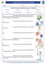 Nucleic acids and protein synthesis. High School Biology Worksheets ... Nucleic acids and protein synthesis. High School Biology Worksheets, Vocabulary Sets and Answer key. KINDERGARTEN 1st Grade 2nd Grade 3rd Grade 4th Grade 5th Grade 6th Grade 7th Grade 8th Grade HIGH SCHOOL Nucleic acids and protein synthesis - Biology The term nucleic acid is the name for DNA and RNA. They are composed of nucleotides.