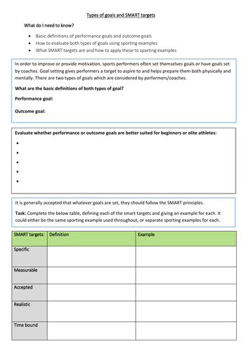 Goal setting for athletes worksheet