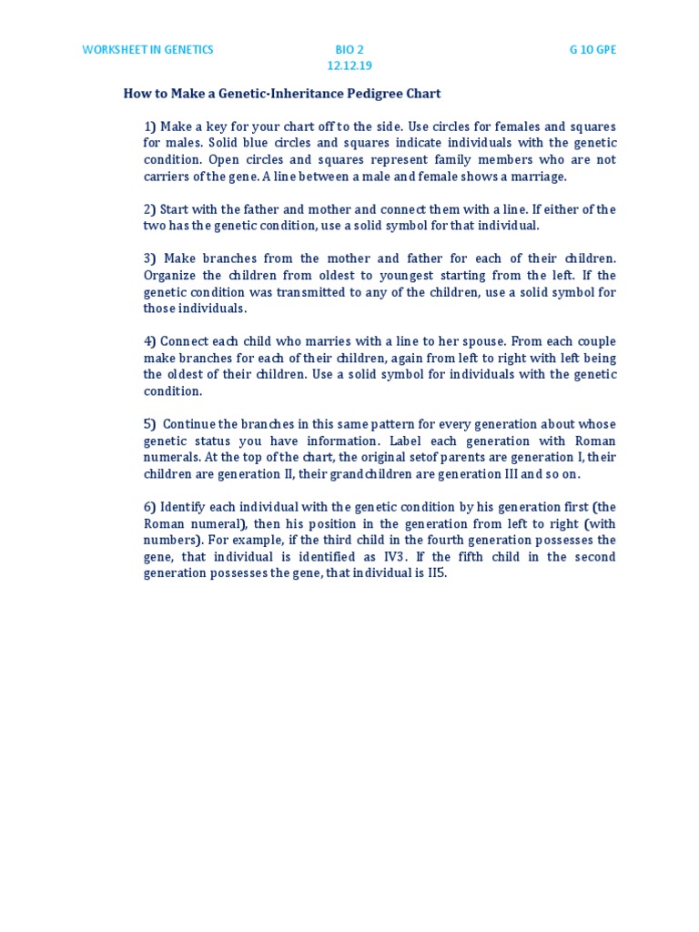 Pedigree worksheet interpreting a human pedigree