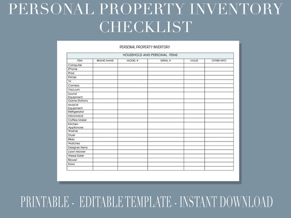 How to Make a Personal Property Inventory List - Brinks Home™ While there are all kinds of personal property inventory spreadsheet templates online, here's an example of what one might look like, including critical information to help you, law enforcement, or insurance agents identify and value your property in the event of theft or damage: Bringing it all together