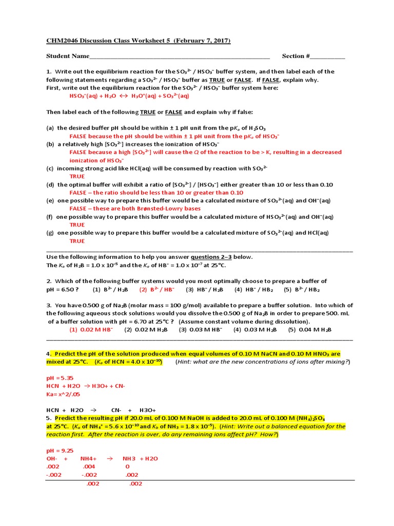 acid_and_base_worksheet_answers.doc - Course Hero View acid_and_base_worksheet_answers.doc from BIOLOGY 1 at El Camino Community College District. Acid and Base Worksheet - Answers 1) Write equations for the following acid-base reactions and