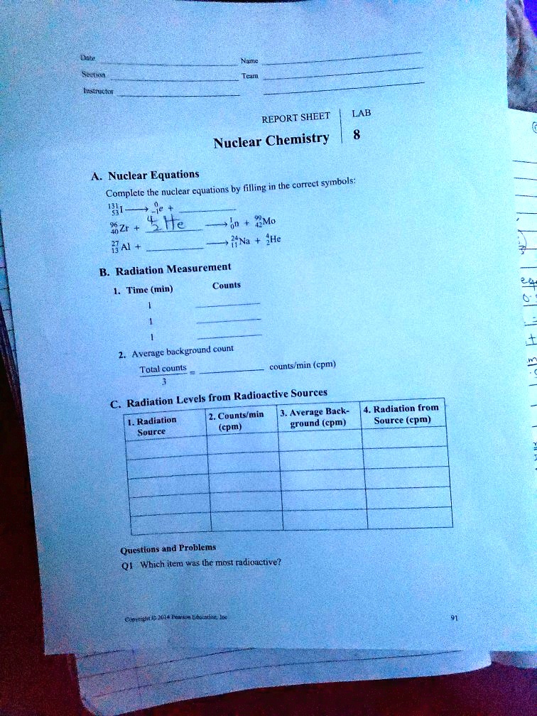 Chapter 25 nuclear chemistry worksheet answers. PDF Chapter 25 nuclear chemistry worksheet answers The atomic theory in the nineteenth century assumed that the nuclei had fixed compositions. But in 1896, the French scientist Henri Becquerel discovered that a uranium compound place near a photographic plate has an image on the plate, even though the compound was wrapped in black cloth. He told that the uranium compound was emitting akind of ra... Chapter 25 Nuclear Equations Worksheet Answer Key ... Chapter 25 Nuclear Equations Worksheet Answer Key | 18c9e564d05204d201dd73ad08ecb171 Chapter 25 Nuclear Equations Worksheet Answer Key | 18c9e564d05204d201dd73ad08ecb171 Chapter 25 nuclear chemistry work answers - gundogar-news.com Chapter 25 nuclear chemistry worksheet answers.The three most common types of radiation emitted by unstable nuclei are. Workbook If your instructor recommends the Active Learning Workbook, do Questions, Exercises, and Problems 19-29. Read online Chapter 25 nuclear chemistry test answer key - Soup.io book pdf free download link book now. PDF Nuclear Chemistry Answers True Or False - yearbook2017.psg.fr Nuclear Chemistry Answers True Or False ch 25 section review answers answers to ch 25 section, owlbook chapter 24 nuclear ... answer key for nuclear chemistry worksheet 1 nuclear, chemistry help needed w periodic uk answers yahoo com, true ... chapter 25 nuclear chemistry269 12 is the following sentence true or false gamma