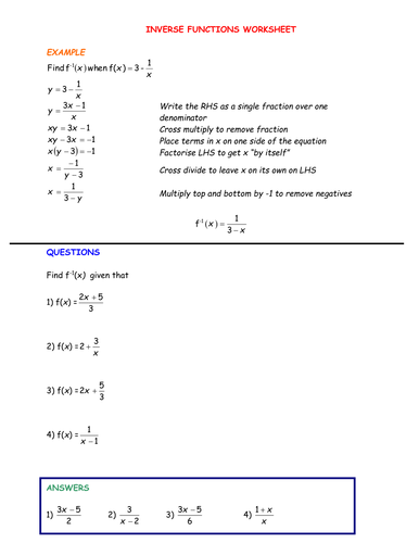 Inverse functions worksheet with answers