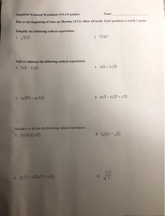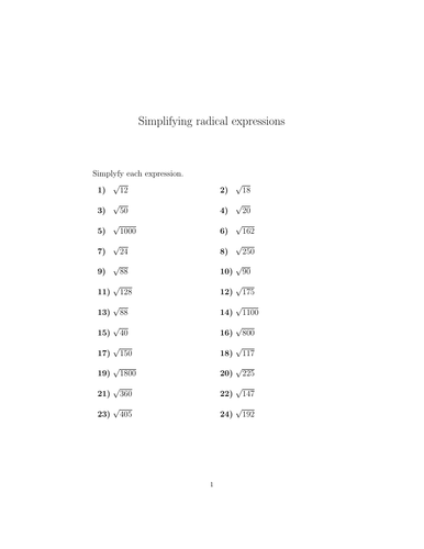 Multiplying radical expressions worksheet